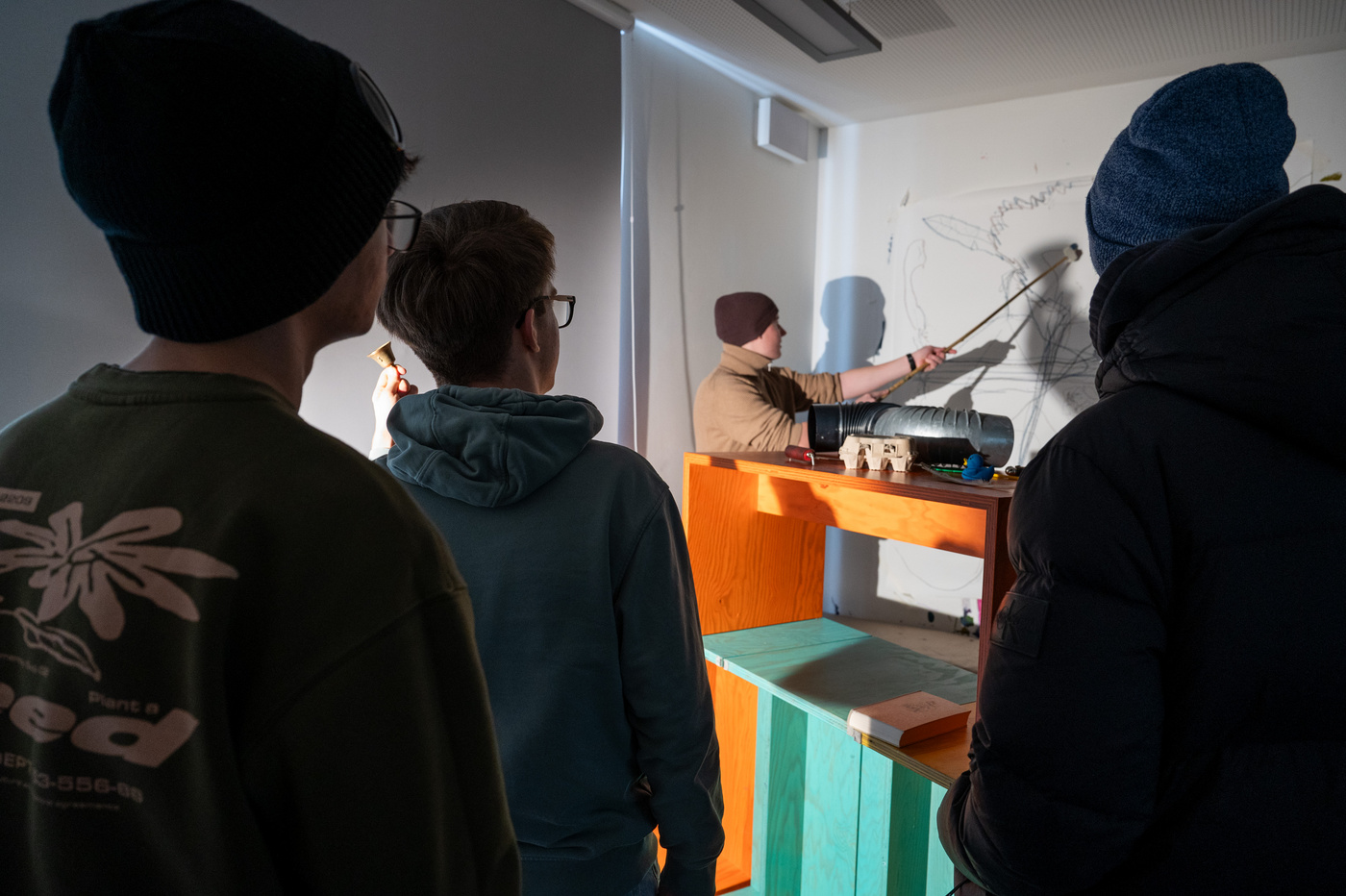 In unseren Workshops für Schulklassen möchten wir gemeinsame Auseinandersetzungen anregen: Kunst entdecken und erfahren, über sie nachdenken, sie befragen, eigene künstlerische Prozesse anstoßen. Jenseits von Alltagsroutinenladen laden unsere Workshops zum experimentellen und spielerischen Lernen ein. Sie geben Raum zum Erproben künstlerischer Denkweisen und Praktiken.