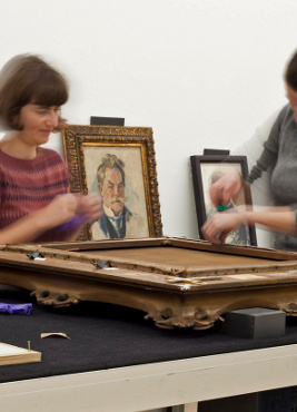 Die Pflege der Sammlung ist elementare Aufgabe der Restaurierung im Museum. Das beinhaltet vor allem die Konservierung, Restaurierung und Dokumentation der Kunstwerke. Doch was genau bedeuten diese Begriffe? Welche Tätigkeiten verbergen sich hinter diesen Ausdrücken? Welche restauratorischen Maßnahmen werden ergriffen um ein Kunstwerk zu retten? Was sind die Rahmenbedingungen der Restaurierung um im Museum arbeiten zu können? Welche Vorbereitungen werden getroffen, wenn Kunstwerke als Leihgaben verschickt werden?