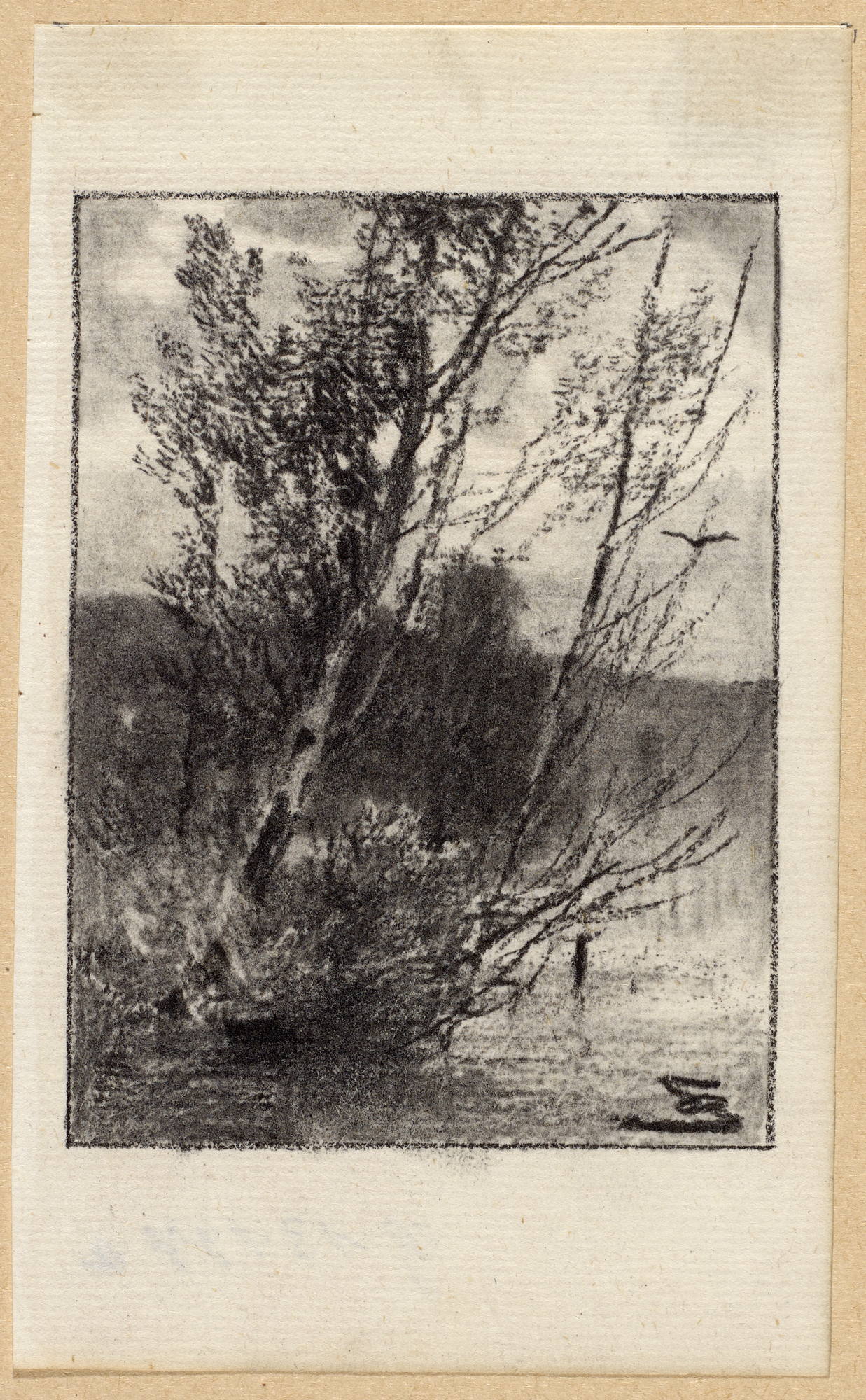 Otto Seitz, Birken am Teich, Kohle gerandet, 10 cm x 7,4 cm, Städtische Galerie im Lenbachhaus und Kunstbau München