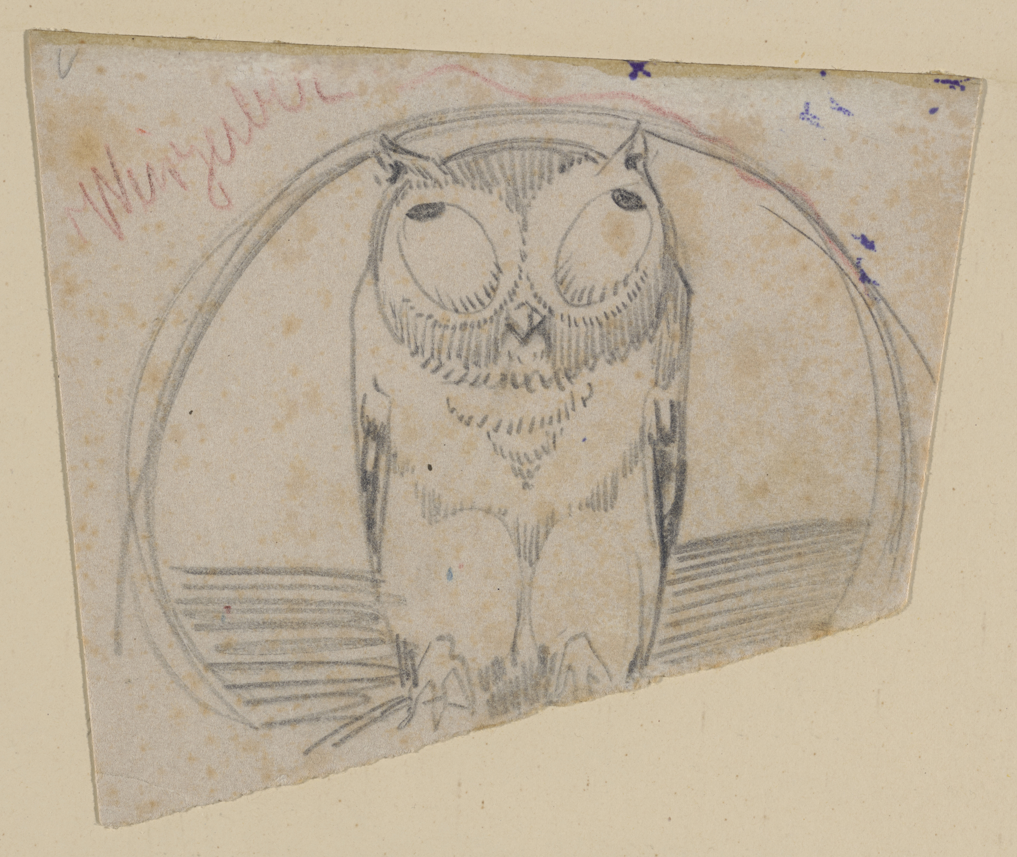 Albert Weisgerber, Eule, Blei, 12,5 cm x 16,5 cm, Städtische Galerie im Lenbachhaus und Kunstbau München, Schenkung aus dem Nachlass von Rolf von Hoerschelmann, Feldafing