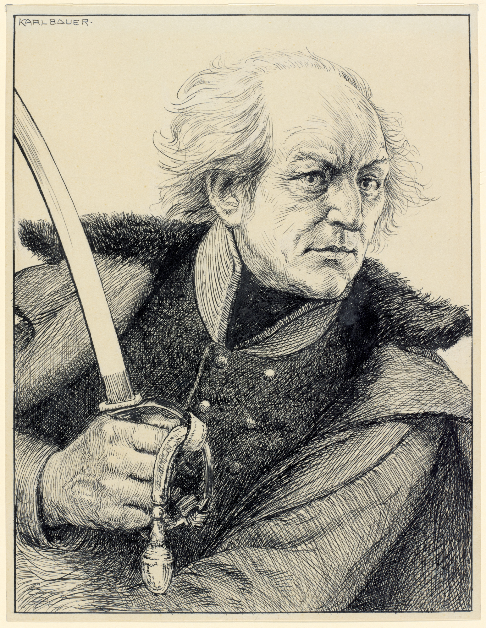 Karl Bauer, Graf York von Wartenberg, Tusche gerandet, Städtische Galerie im Lenbachhaus und Kunstbau München