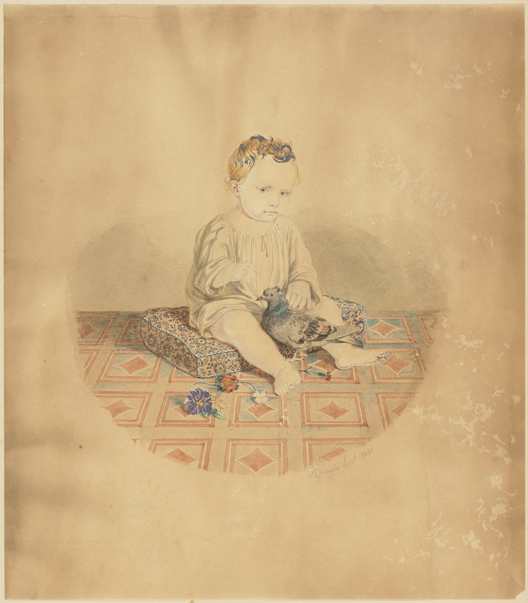 Lorenz Quaglio, Kinderportrait (von Frieda, der Tochter des Künstlers), 1844, Aquarell Deckweiß auf Blei, 35,7 cm x 30 cm, Städtische Galerie im Lenbachhaus und Kunstbau München