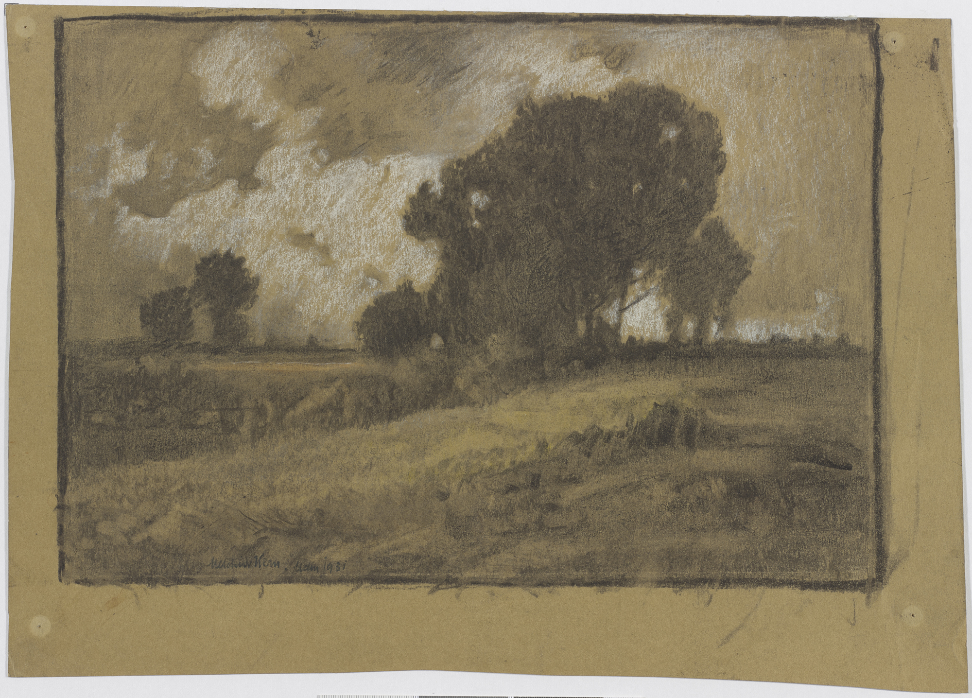 Melchior Kern, Landschaft, 1931, Kohle mit Deckweiß, 25 cm x 36 cm, Städtische Galerie im Lenbachhaus und Kunstbau München