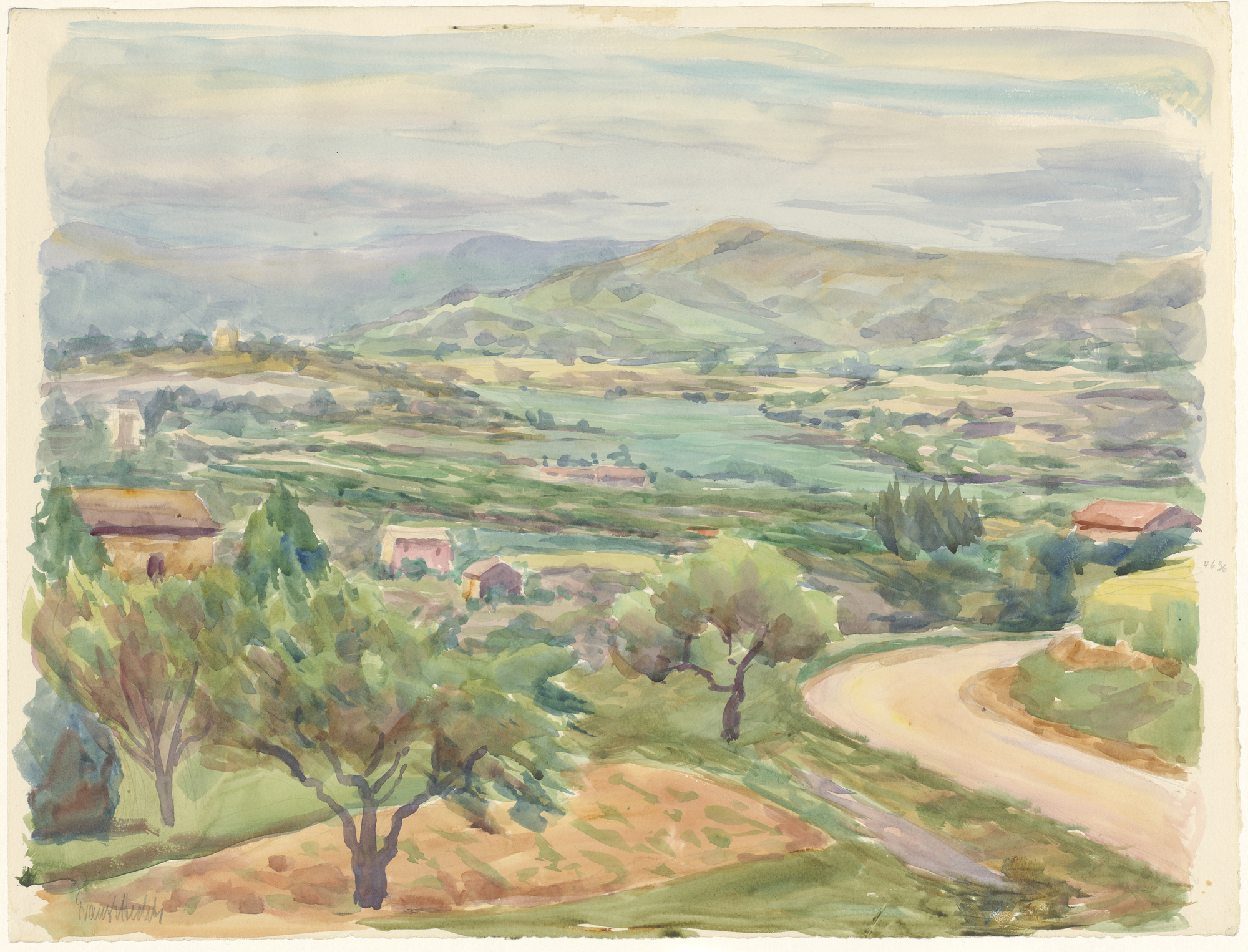 Franz E. Hecht, Landschaft aus der Provence, Aquarell auf Blei, 38 cm x 50 cm, Städtische Galerie im Lenbachhaus und Kunstbau München