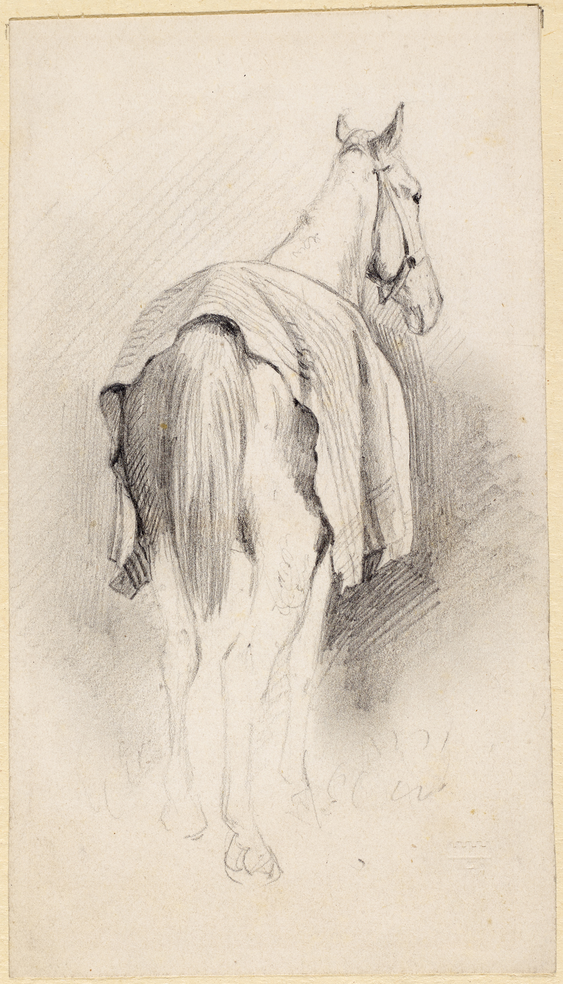 Pferd mit Decke auf dem Rücken - von hinten von Franz Quaglio