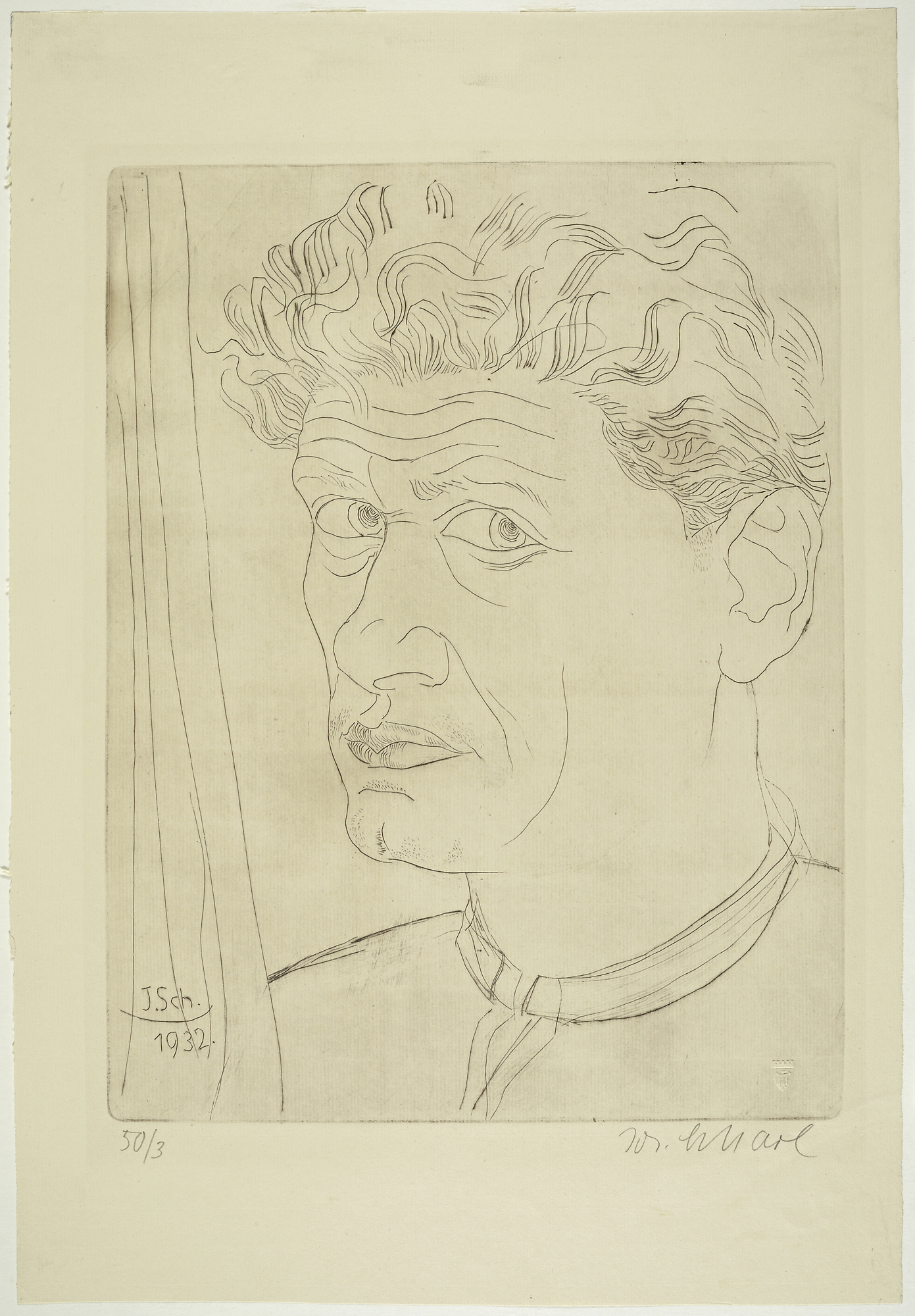 Josef Scharl, Selbstbildnis, 1932, Radierung, Städtische Galerie im Lenbachhaus und Kunstbau München, © Josef Scharl bzw. Rechtsnachfolge