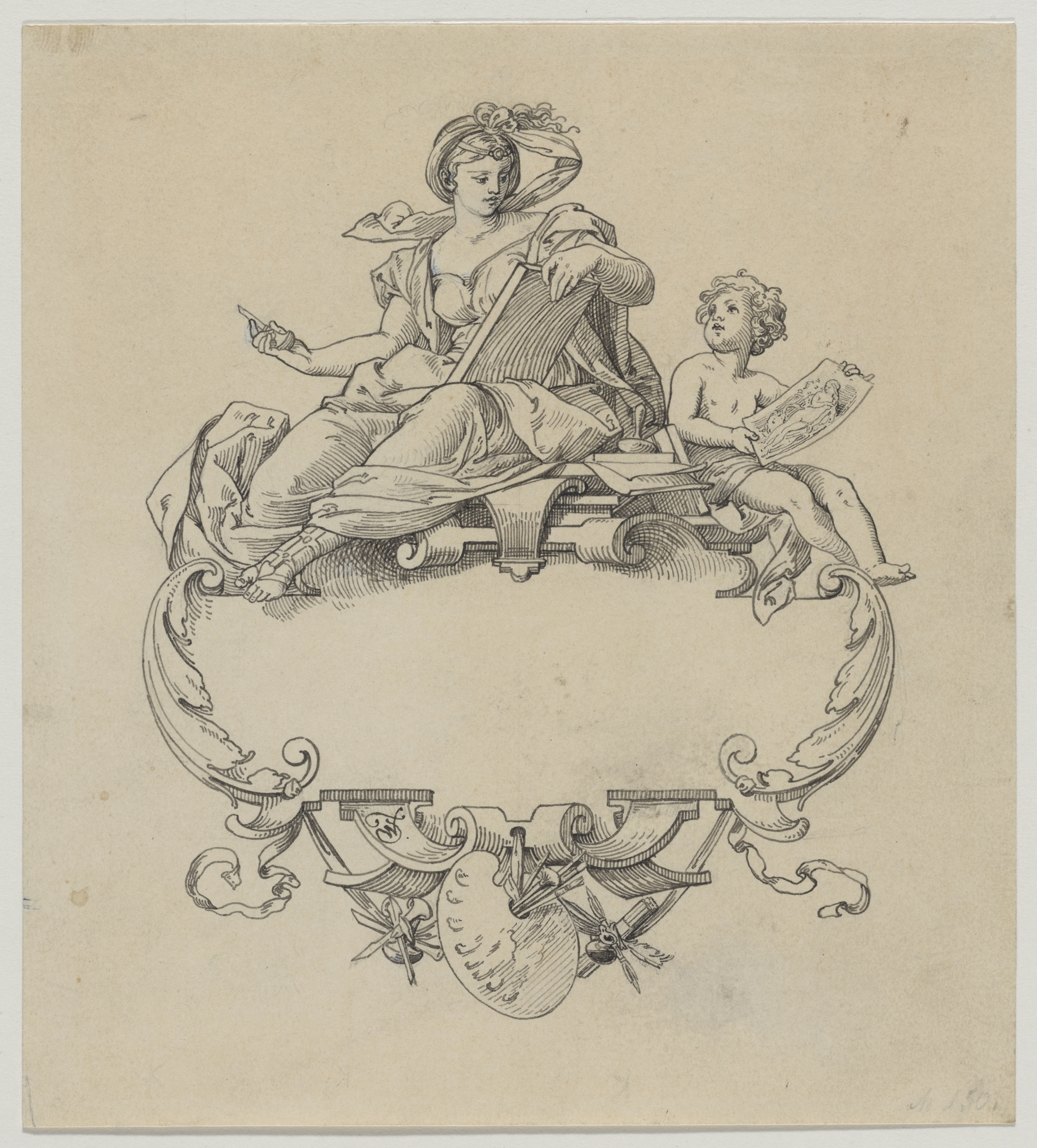 Joseph Watter, Allegorie der Malerei und der schönen Künste, Tusche, 19,3 cm x 17,4 cm, Städtische Galerie im Lenbachhaus und Kunstbau München