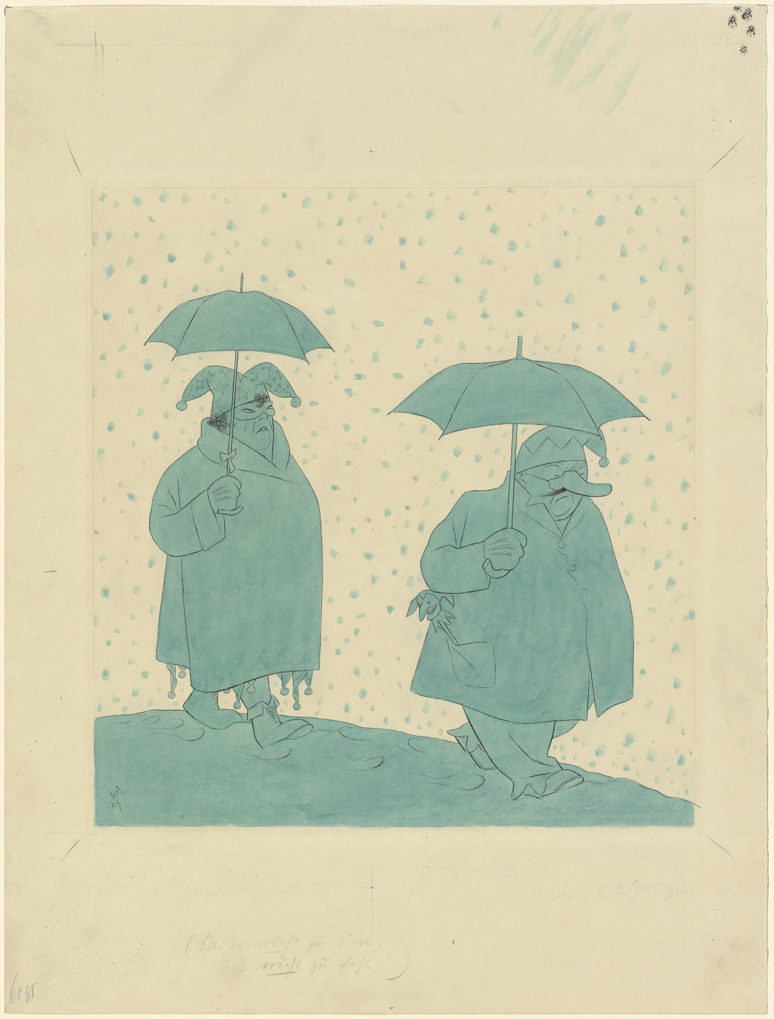Karl Arnold, Fasching (Da muaß ma mitmacha, dös is dös oanzige, wo ins Berlin nix dreinredt!), 1929, Tusche Aquarell gerandet, Städtische Galerie im Lenbachhaus und Kunstbau München, © VG Bild-Kunst, Bonn 2018, Foto: Lenbachhaus, Ernst Jank