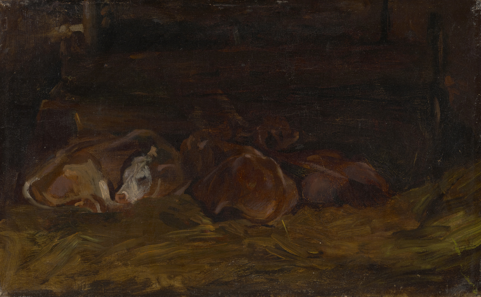 Charles Richard Tooby, Kühe im Stall, Öl/Leinwand, 29,4 cm x 47,2 cm x 1,8 cm, Städtische Galerie im Lenbachhaus und Kunstbau München
