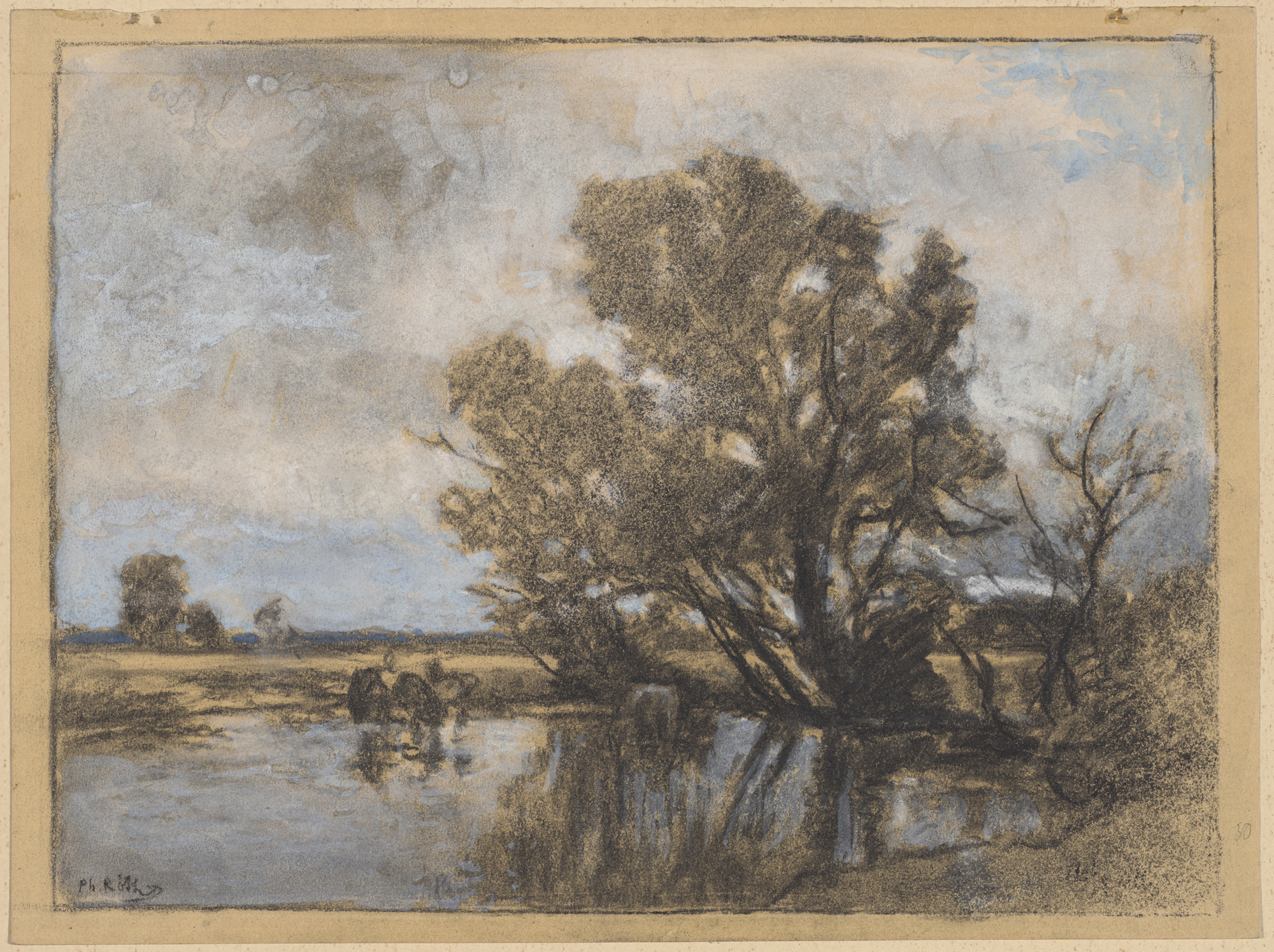 Philipp Röth, Landschaft, Kohlezeichnung mit Weiß, 27 cm x 36 cm, Städtische Galerie im Lenbachhaus und Kunstbau München