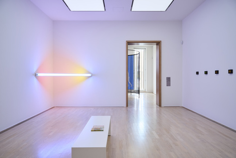 Download Ausstellungsansicht / Installation Shot, Shifting the Silence. Die Stille verschieben, Dan Flavin, Städtische Galerie im Lenbachhaus und Kunstbau München / Lenbachhaus Munich, 2025. Foto / Photo: Lukas Schramm, Lenbachhaus